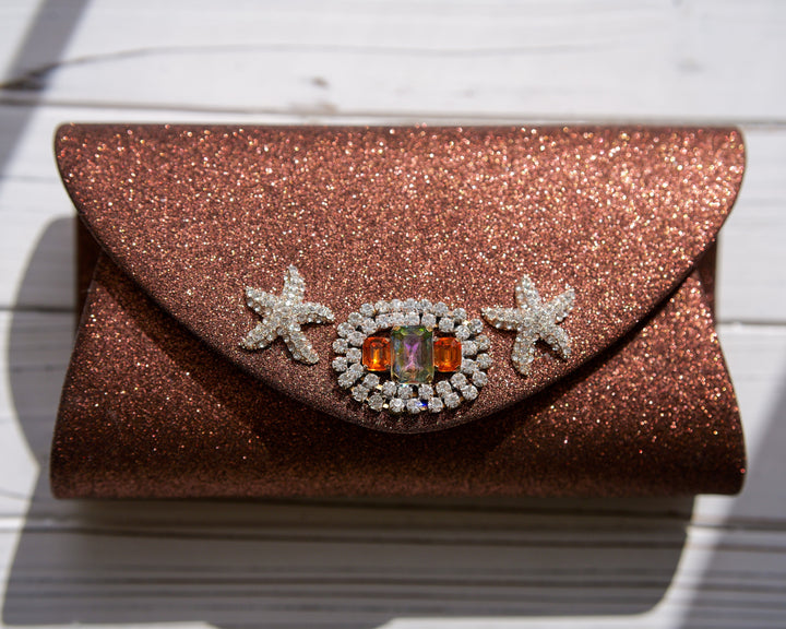 Pumpkin Orange Faux Suede Clutch Purse with Vintage Details - One-of-a-Kind